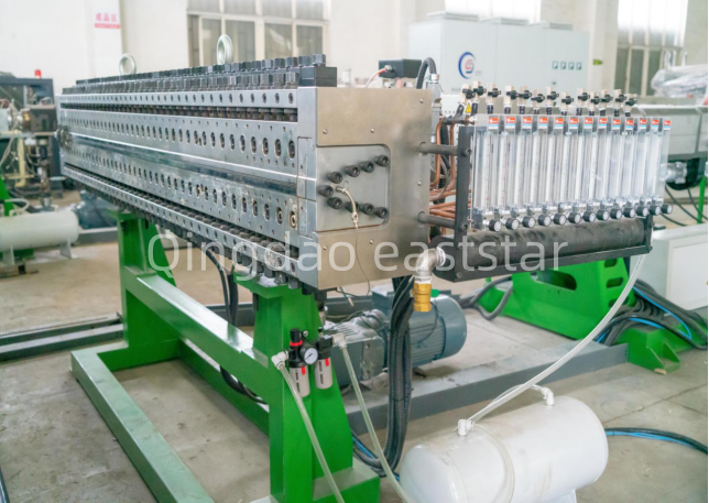 TheplesnivecsystémuLinka na výrobu PP panelov s otvorenými bunkamije vyrobený z vysoko kvalitnej formovacej ocele, so šírkou otvoru formy 2200 mm, schopný vyrábať mriežkové panely s otvorenými bunkami s hrúbkou 2-6 mm. Forma je vybavená 11-zónovým vykurovacím systémom s vykurovacím výkonom 4KW/zóna s využitím vnútorného ohrevu na zabezpečenie rovnomernej teploty. Platforma na vákuové tvarovanie a chladenie využíva kombinovaný dizajn dvojstupňového vákuového chladenia a tvarovania plus jednostupňové chladenie a tvarovanie, vybavené vákuovým čerpadlom s výkonom 15 kW na zabezpečenie stabilného tvarovania plechu. Tieto profesionálne konfigurácie zaisťujú, že produkty vyrábané výrobnou linkou mriežkových panelov s otvorenými bunkami majú jednotnú štruktúru mriežky a stabilnú rozmerovú presnosť.