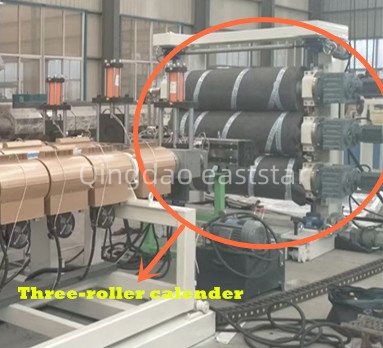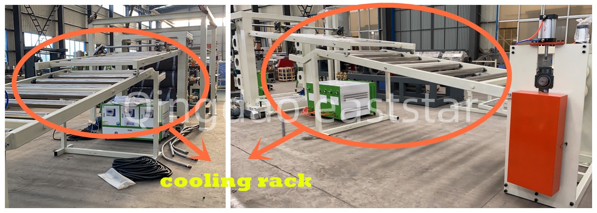 Vybavili smeLinka na výrobu viacvrstvových koextrúznych listov ABSs kompletným podávacím a pomocným systémom. Extrudér SJ-130 je vybavený závitovkovým podávačom z nehrdzavejúcej ocele E-1000 a extrudér SJ-70 je vybavený vákuovým podávačom E-300, ktorý zaisťuje presné zásobovanie rôznymi surovinami. Chladiaca podpera je vybavená 8-metrovými nerezovými valcami a tromi nastaviteľnými orezávačmi hrán, ktoré zaisťujú dostatočné chladenie plechu a úhľadné okraje. Rezací stroj používa mechanické elektrické nožnice vybavené kórejským kódovačom Autonics na dosiahnutie automatického rezania s pevnou dĺžkou.