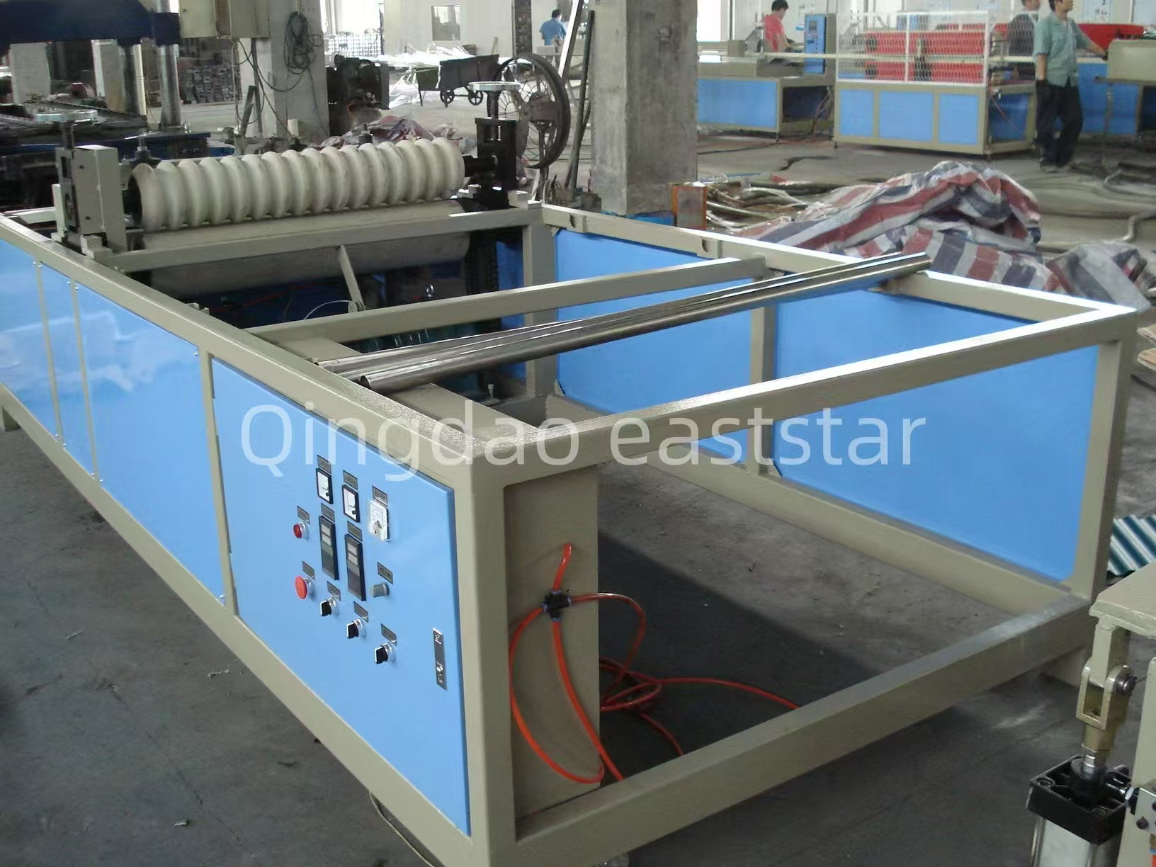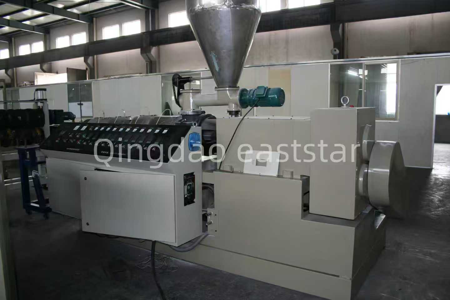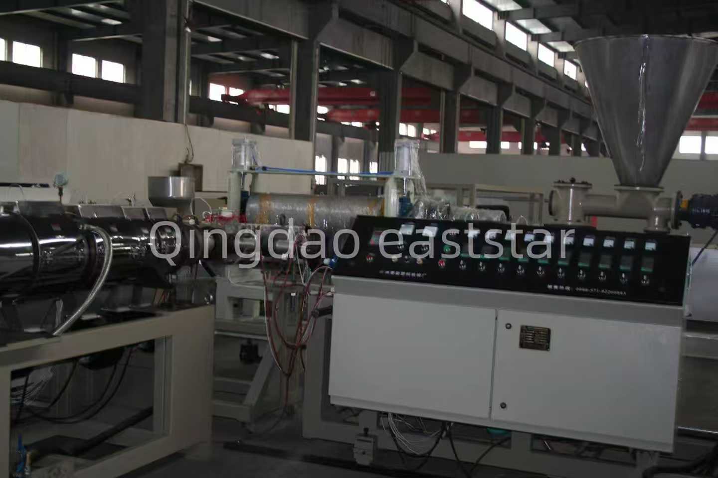 Pomocný systémVýrobná linka na výrobu vlnitého plechu na koextrúziu PC + ASAobsahuje dva jednozávitovkové extrudéry, SJ-120 a SJ-40, používané na vytláčanie PC vrstvy a ASA vrstvy.