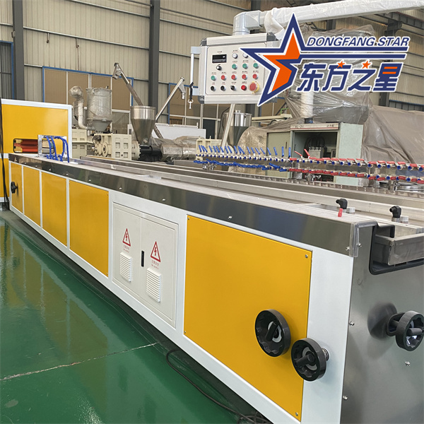 Linka na výrobu profilov využíva kónické dvojzávitovkové extrudéry série SJSZ-65/132, nerezové vákuové tvarovacie plošiny, pásové traktory, automatické rezacie integrované stroje a preklápacie vykladacie regály. Tvarovacia plošina je vybavená vysokotlakovou vákuovou pumpou a vodnou pumpou, ktoré sú štvorrozmerne nastaviteľné. Traktor je pneumaticky upínaný. Automatický rezací stroj s pevnou dĺžkou používa prepínač jazdy na rezanie na pevnú dĺžku. Stohovací regál je 6 metrov dlhý, vyrobený z nehrdzavejúcej ocele a pneumaticky preklápateľný.