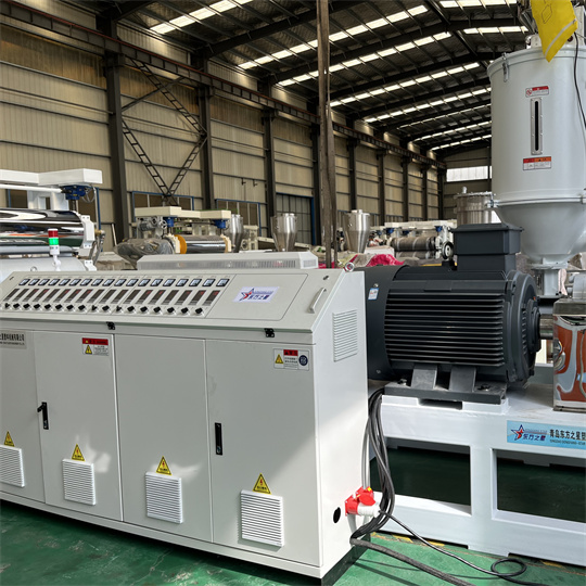 Vybavenie antistatického extrudéra z mäkkého PVC: Zariadenie pozostáva hlavne zo 120 jednozávitovkového extrudéra, trojvalcového kalandra, chladiacej konzoly, gumového valcového trakčného stroja, strihacieho stroja a